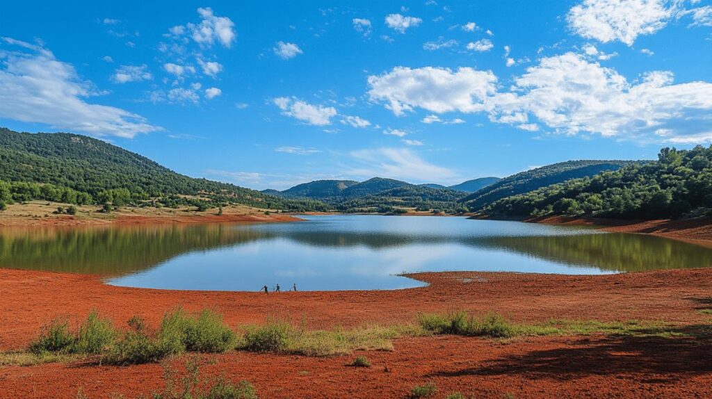 Niché au cœur de l'Hérault, le Lac du Salagou se distingue par ses eaux turquoise contrastant avec un paysage de